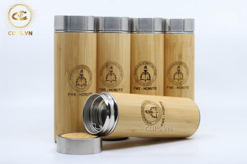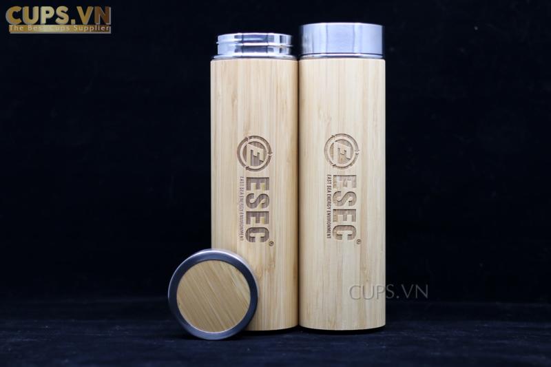 + Lớp vỏ ngoài cùng của bình giữ nhiệt được làm bằng chất liệu đặc trưng là tre ép khối độc đáo, mang lại gần gũi với thiên nhiên. Đồng thời bạn có thể khắc logo lên bình theo ý muốn.